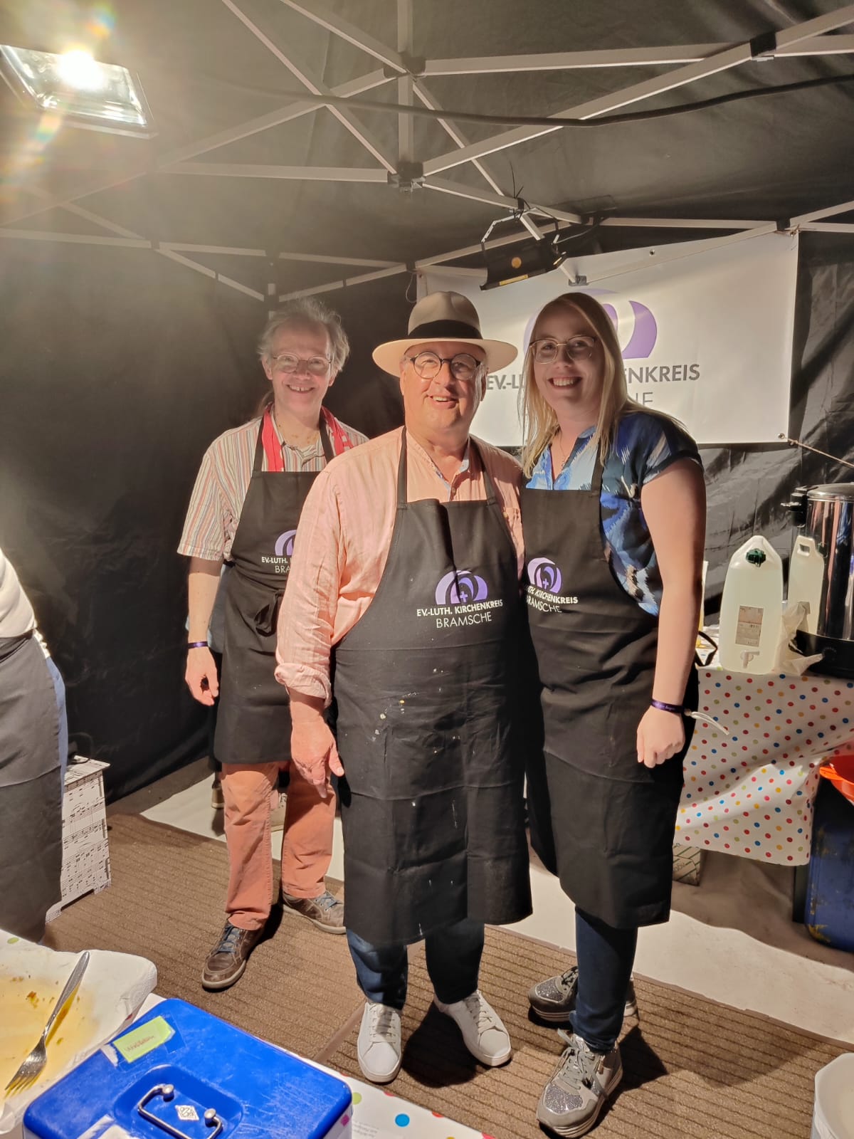Der 39. Evangelische Kirchentag fand dieses Jahr vom 30.04. bis 04.05.2025 in unserer Landeshauptstadt Hannover statt. Wie immer begann diese Veranstaltung mit zwei großen Festgottesdiensten. Im Anschluss hieran fand der Abend der Begegnung statt, an dem auch wir vom Kirchenkreis Bramsche teilgenommen haben. Mit unserem neuen Segensmobil haben wir Segen in unterschiedlichen Formen empfangen und weitergegeben. Wie schmeckt Segen? Wie eine Erdbeere oder wie ein saures Bonbon? Wie fühlt sich Segen an? Wie eine zarte Handcreme oder wie ein harter Schwamm? Aber nicht nur für die Segenshungrigen gab es etwas an unserem Stand, sondern auch für alle anderen, die hungrig an unseren Stand kamen. Neben unserem Segensmobil war ein weiterer Stand aufgebaut, an dem Kartoffelpuffer gebraten wurden und die schon von weitem in der Knochenhauerstraße zu riechen waren. Die Schlangen vor beiden Ständen waren enorm lang und manch ein Besucher hat geduldig bis zu einer Stunde auf seine Portion Kartoffelpuffer gewartet.
