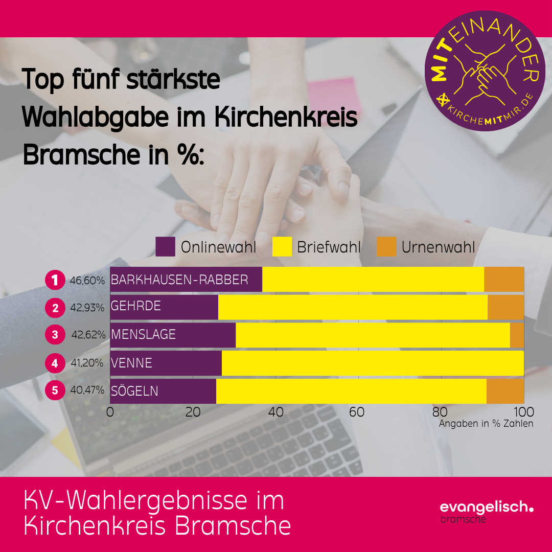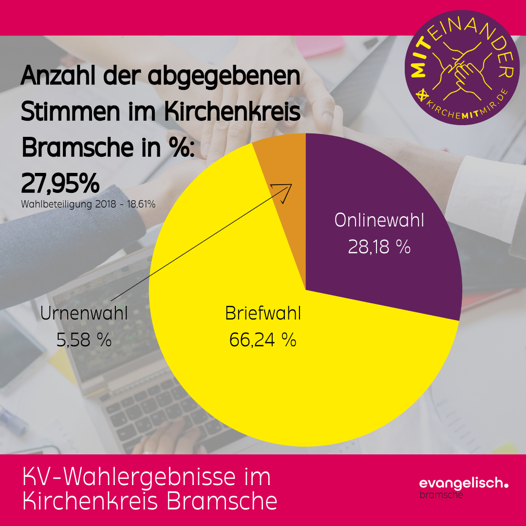 Die Wahlbeteiligung an den Kirchenvorstandswahlen im Kirchenkreis Bramsche ist im Jahr 2023 um ca. 10% im Vergleich zur letzten Wahl 2018 gestiegen.