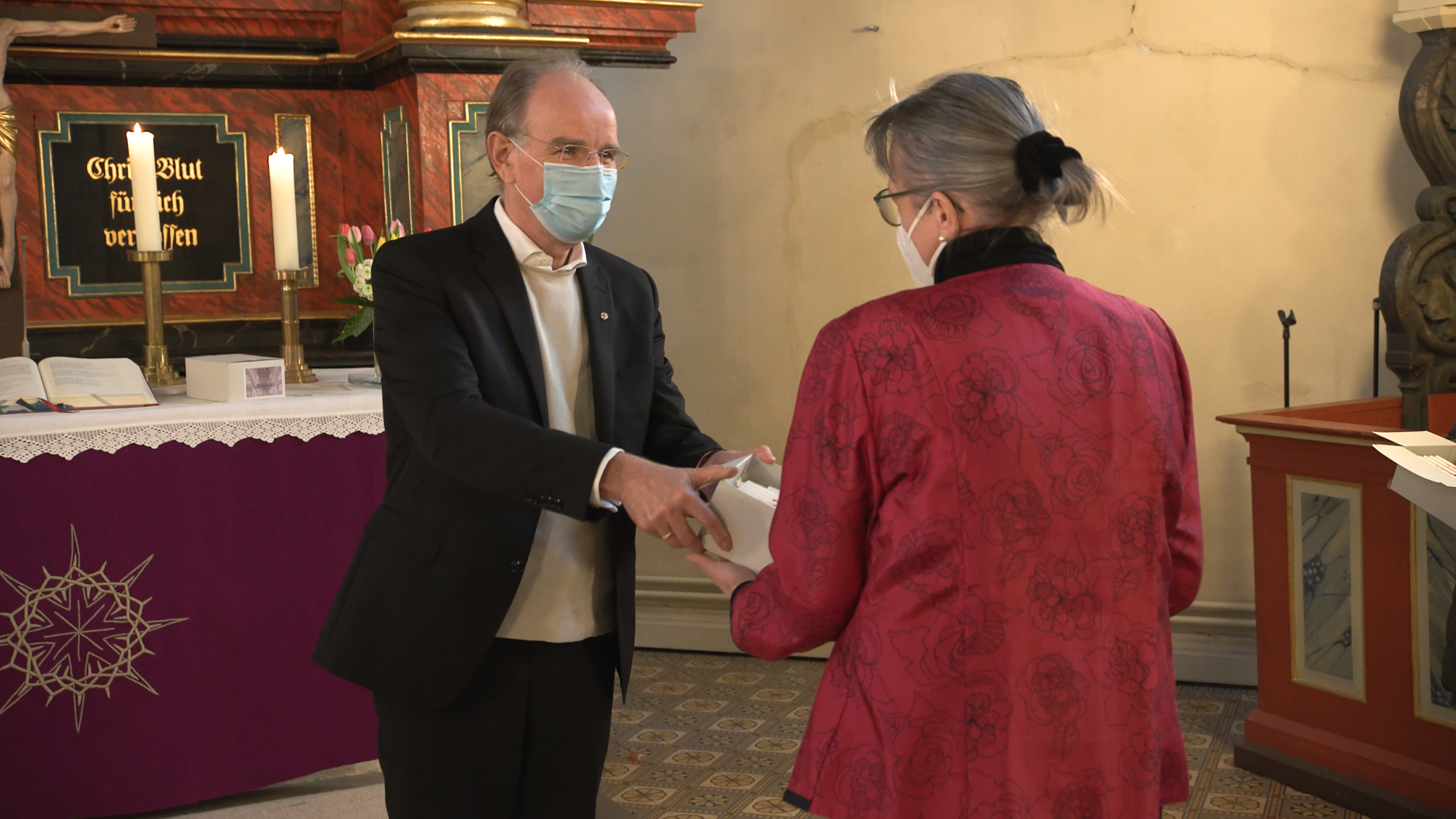 In 100 Kirchengemeinden verteilt Landesbischof Ralf Meister bei Kurzbesuchen in den nächsten Wochen jeweils 100 Kerzen. Heute machte er auf seiner Tour halt in Bramsche. Die Kerzen sind für Aktionen rund um das Osterfest oder die Feier der Osternacht gedacht.