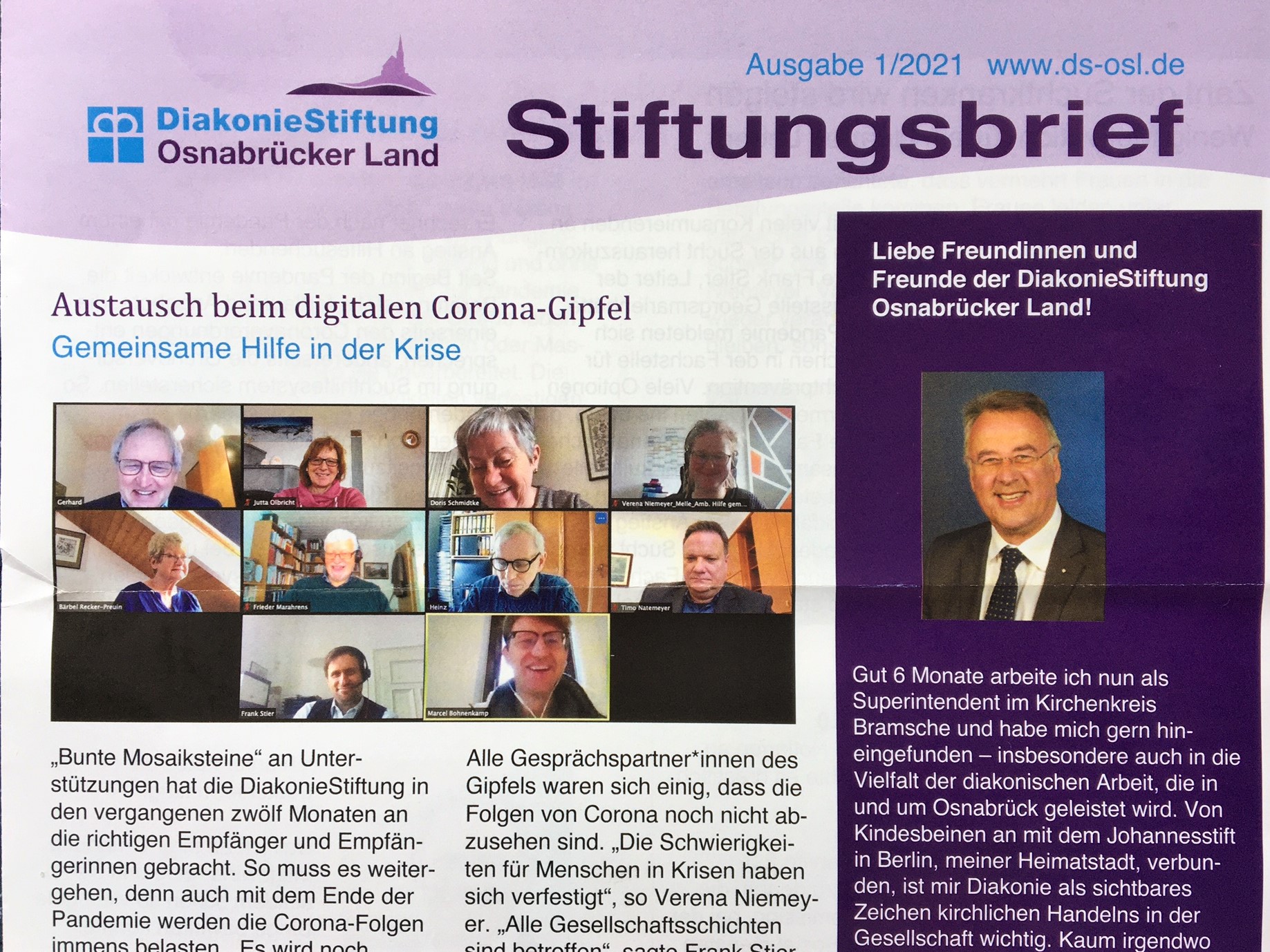 Der Austausch mit den Einrichtungsleitern Marcel Bohnenkamp, Bahnhofsmission Osnabrück, Frank Stier, Suchtberatungsstelle Georgsmarienhütte, Verena Niemeyer, Wohnungslosenhilfe Melle, und Heinz Bertram, Initiative „Bohmte hilft“, zeigte, wie nötig die Hilfe der DiakonieStiftung auch in der Zeit nach Corona ist.